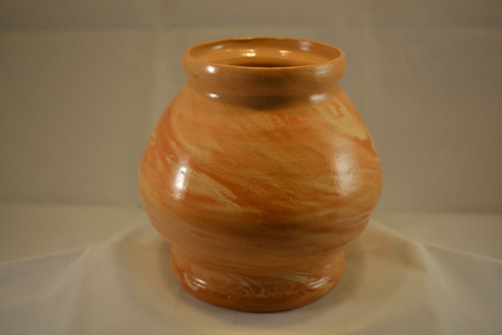 Vaasje gedraaid met rood - en wiit bakkende klei.