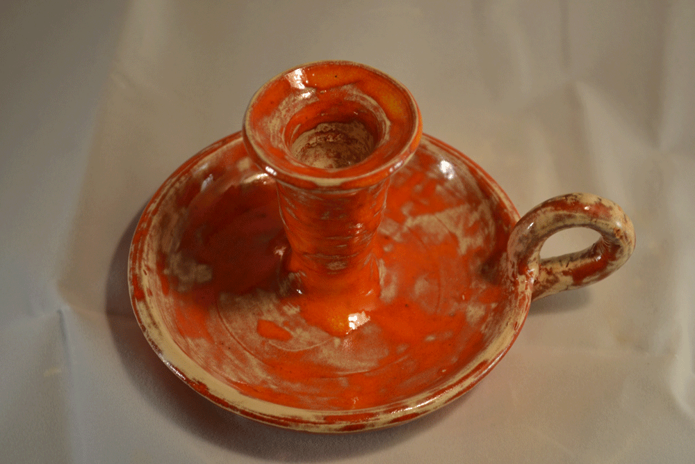 Kandelaar gelgazuurd met klaproosrood glazuur.