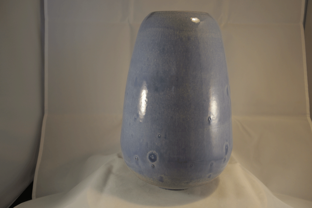De vaas is geglazuurd met zelfgemaakte glazuur.
