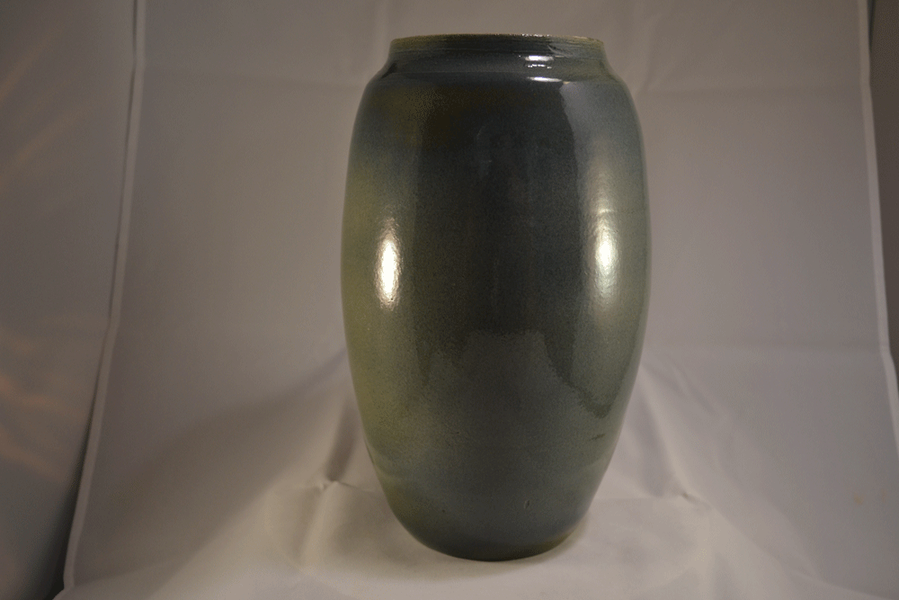 Vaas geglazuurd met blauw-metaal glansglazuur.