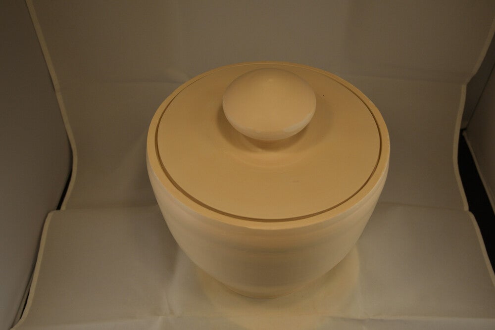 Urn zonder afwerking. De afwerking vindt plaats na overleg. Bij deze urn kan gekozen worden uit saggar stook, of een afweking met ingebrande (paarden)haar. Wilt u een voorbeeld van saggarstook druk op: Saggar Wilt u een voorbeeld van ingebrand (paarden)haar druk op: Inbranden