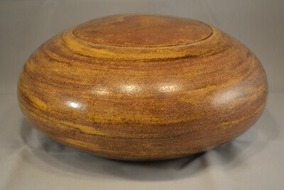De urn is afgewerkt met glazuur van eigen ontwerp.