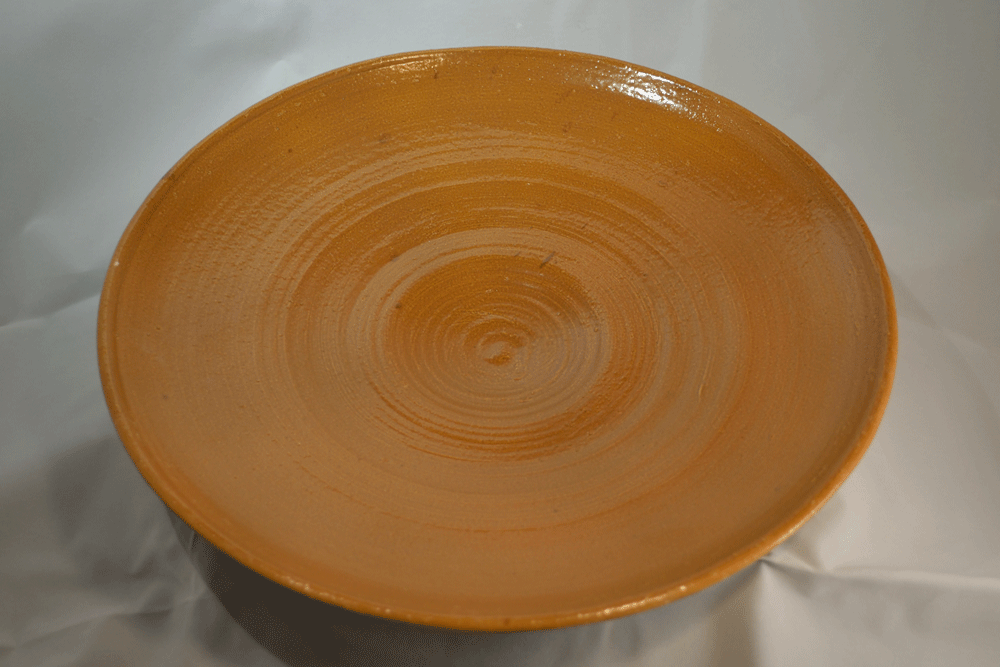 Schaal is afgewerkt met lichtbruin glansglazuur.