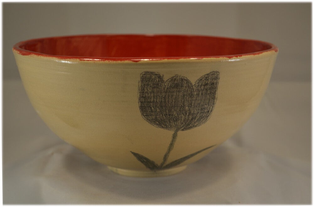 De kom is afgewerkt met motieven in onderglazuur. Daar over transparant glazuur.