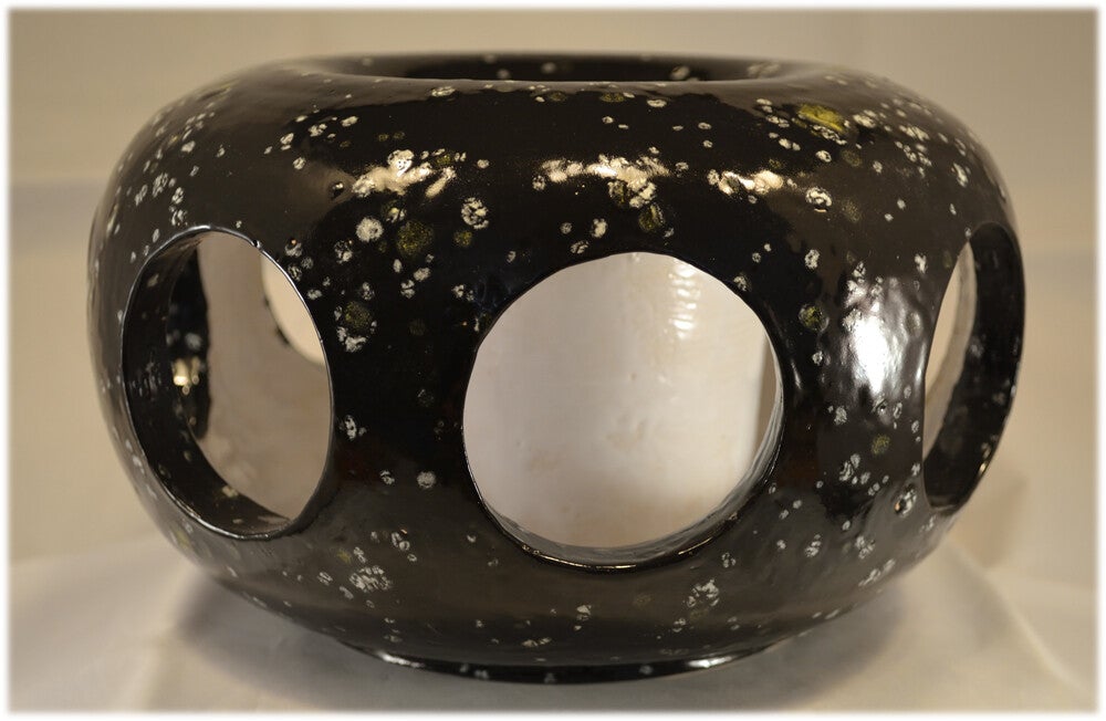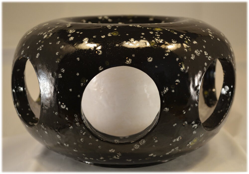Deze dubbelwandige vaas is gedraaid uit 1 homp klei.