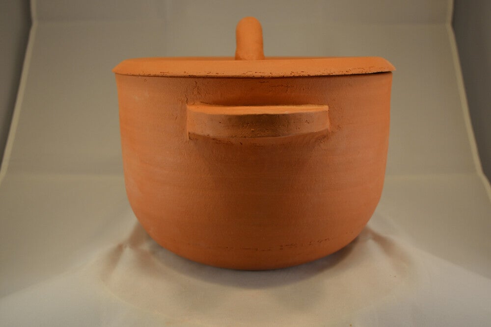 Kookpot is gemaakt van roodbakkende klei. De pot is biscuit gestookt en niet geglazuurd. Daardoor geschikt als römertopf.