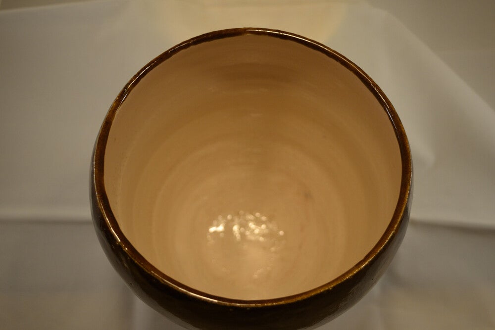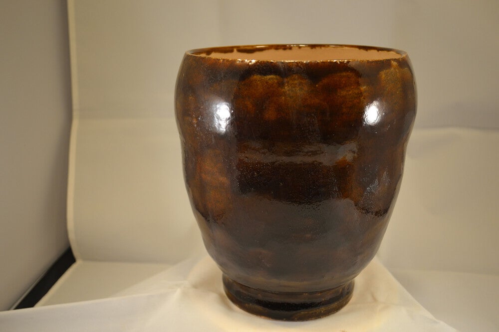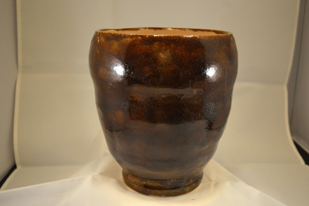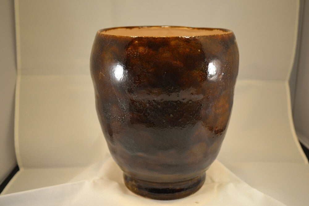 Grote donkerbruine gemêleerde vaas. De binnenkant heeft transparant glazuur.